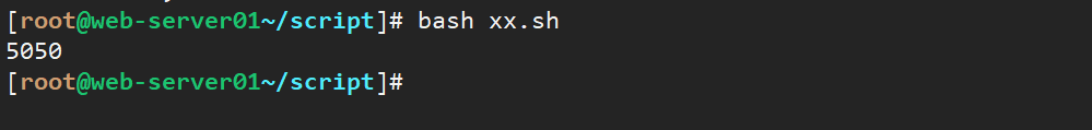 #!/bin/bash # by author rivers on 2021-9-27 j=0 i=1 while ((i<=100)) do j=`expr $i + $j` ((i++)) done echo $j