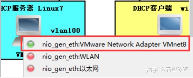 DHCP服务器用VMnet8网卡连接,客户端就用VMnet1连接。连接好后,点击工具栏的开启,将端口全部打开。