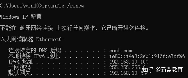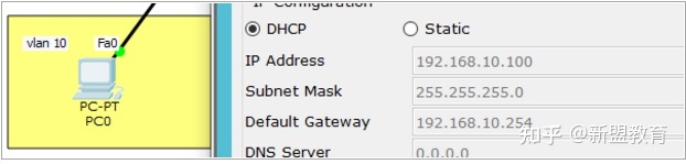 成功从DHCP服务器获取到IP地址,并且是通过三层交换机中继,客户端与服务器不在同一网段,达到此次试验的目的。