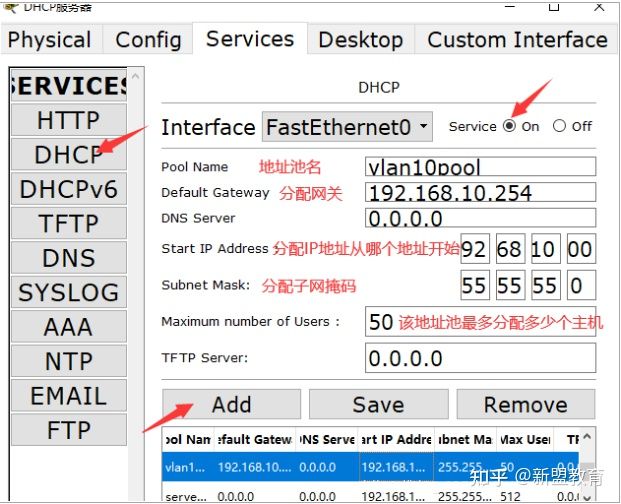 设置DHCP服务器的地址池