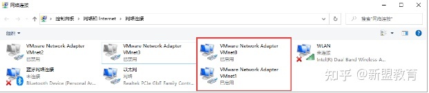 点击应用和确定后,在宿主机(自己实体的电脑),查看刚才设置的网卡,发现新多出来两个的虚拟网卡,如下图所示,表示设置ok。