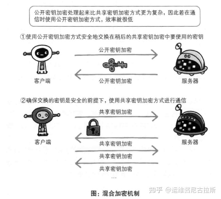 HTTPS采用混合加密方式:利用两种加密方式的优点,组合起来进行通信;在交换秘钥环节使用公开密钥加密方式,之后的建立通信交换报文阶段则使用共享加密方式。