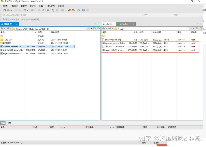 1)先将三个安装文件拷贝到/root目录下: