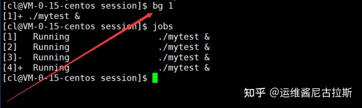例如,使用bg 1命令让1号作业在后台继续运行。
