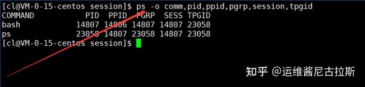其次,我们还可以看到该进程的PID与其PGID和SID是不同的,也就是说该进程既不是组长进程也不是会话首进程。