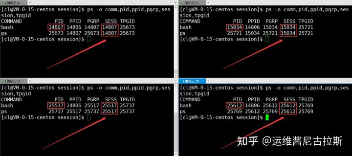 实际我们每一次登录的过程都是新建会话的过程,同一个会话中的所有进程的SESS是相同的。