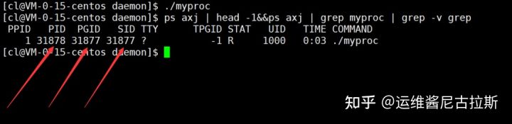 }运行代码,用ps命令查看该进程,会发现该进程的TPGID为-1,TTY显示的是?,也就意味着该进程已经与终端去关联了。