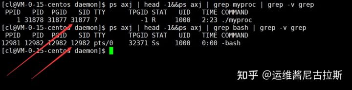 此外,我们还可以看到该进程的SID与bash进程的SID是不同的,即它们不属于同一个会话。