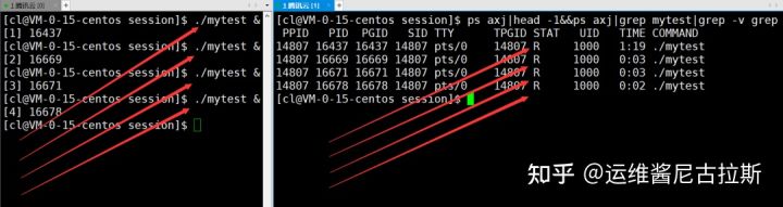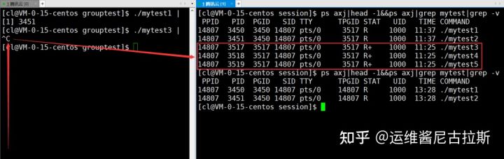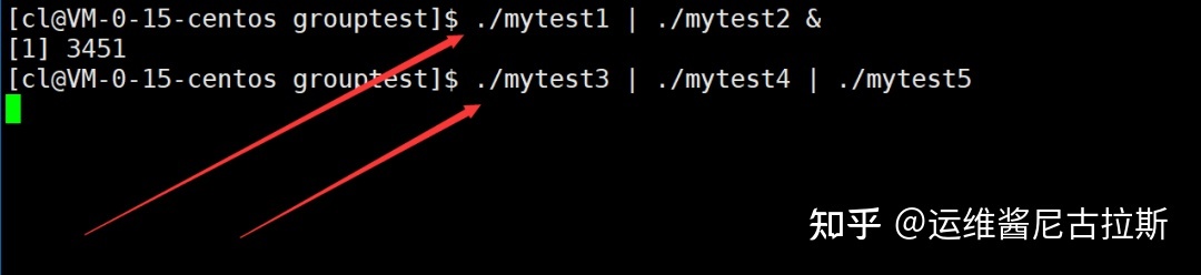 其中mytest1与mytest2属于同一个后台进程组,mytest3、mytest4和mytest5属于同一个前台进程组,而Shell本身属于一个单独的进程组。