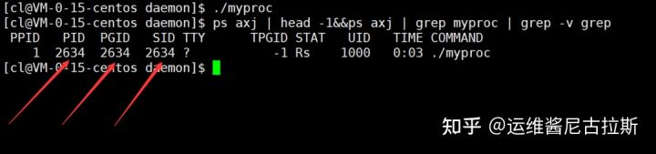 }调用daemon函数创建的守护进程与我们原生创建的守护进程差距不大,唯一区别就是daemon函数创建出来的守护进程,既是组长进程也是会话首进程。