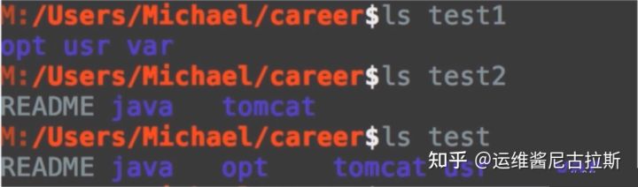 比如test1下有三个文件夹,test2下有两个文件夹,还有一个readme文件。联合文件系统就是可以在一个文件夹(test)中看到多个文件夹(test1,test2)中的内容。