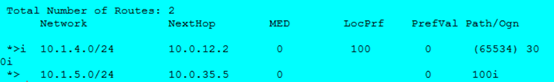 可以看到,如我们上面所说,有序的AS_PATH是2,而无序的AS_PATH是5和1,所以我们可以看到“(2)”就是AS_CONFED_SEQUENCE类型的AS_PATH,而“[5 1]”就是AS_CONFED_SET类型的AS_PATH。