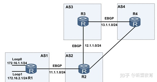 联盟可以极大的降低IBGP连接的数量。在联盟中,只需要在成员自治系统内进行IBGP的全连接,而成员自治系统间使用一种特殊的EBGP连接,我们称之为联盟EBGP。