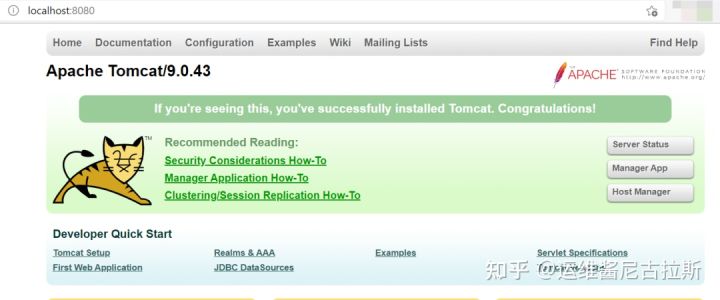先打开startup.bat,再打开浏览器,在地址栏中输入http://localhost:8080或localhost:8080回车,如果看到Tomcat自带的一个JSP页面,说明JDK和Tomcat已搭建成功。