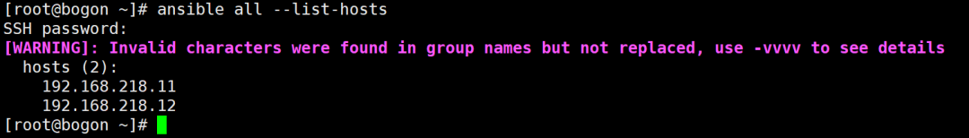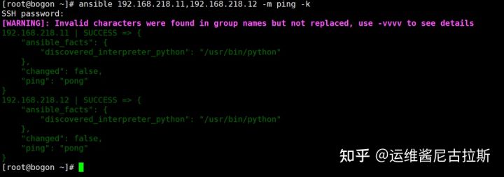 ansible 192.168.218.11,192.168.218.12 -m ping -k