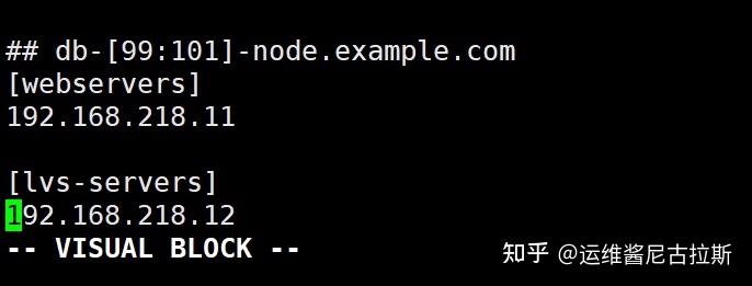 e.g.1 打开三台机器,第一台安装ansible工具,编辑/etc/ansible/hosts文件,在文件末行添加子目录ip地址。