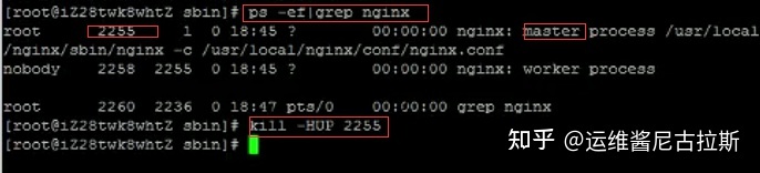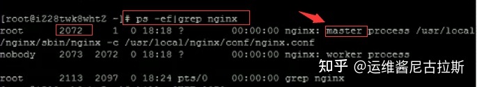 方法二:查找当前nginx进程号,然后输入命令:kill -HUP 进程号 实现重启nginx服务。