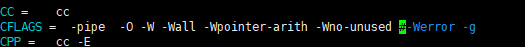 注释掉Werror(它要求GCC将所有的警告当成错误进行处理 所有导致错误输出 并不能进行下一步)。