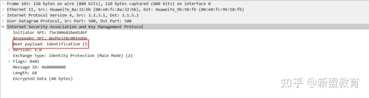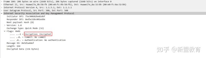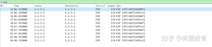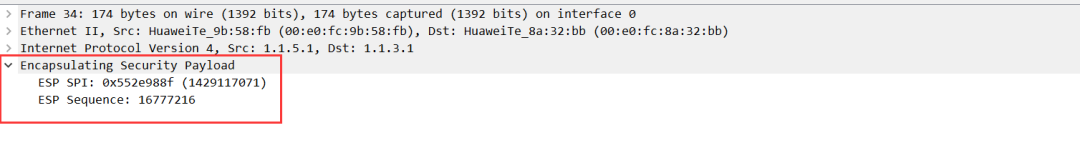 可以看到,报文中的ESP协议中只包含两个字段ESP SPI和ESP Sequence。