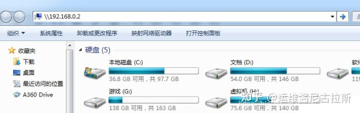 直接在文件管理器或者运行里面输入共享的地址\192.168.0.2。