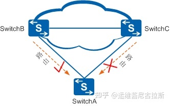 如图1所示,SwitchA属于双上行的组网结构,SwitchA会从SwitchB和SwitchC那里分别接收到路由。如果SwitchA仅希望接收来自SwitchB的路由,而不希望接收来自SwitchC的路由,此时应该怎么办呢?这种情况下就可以考虑在SwitchA上配置路由策略,允许来自SwitchB的路由,拒绝来自SwitchC的路由。