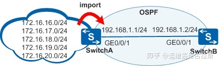 如图3所示,运行OSPF协议的网络中,SwitchA从Internet网络接收路由,并为OSPF网络提供了Internet路由, 现在用户希望OSPF网络仅接收172.16.16.0/24、172.16.17.0/24和172.16.18.0/24这三条外部路由,其他的外部路由都不接收。