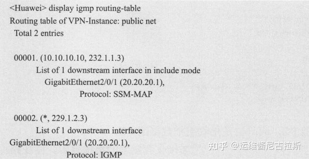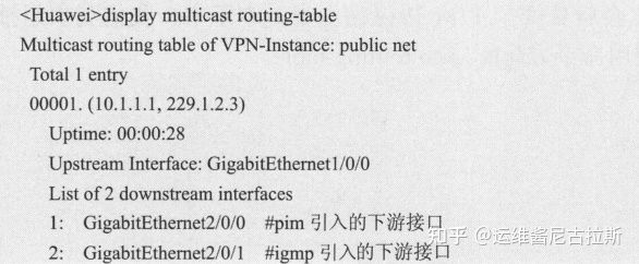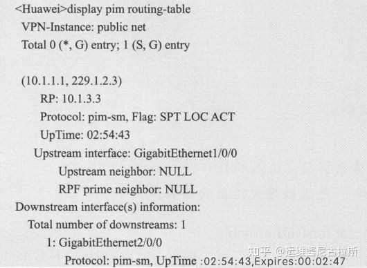 所有协议的路由表都相似,记录表项的(S,G)条目及生存时间,还有上游接口和下游接口列表。其中(*,G)中的星号,表示任意的源地址,G表示组播地址;(S,G) 中的S表示确定的组播源地址。