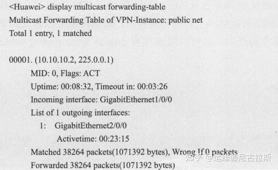 如下display multicast forwarding-table命令,可用于检查组播转发表项有没有成功建立,组播数据能否正常传输:
