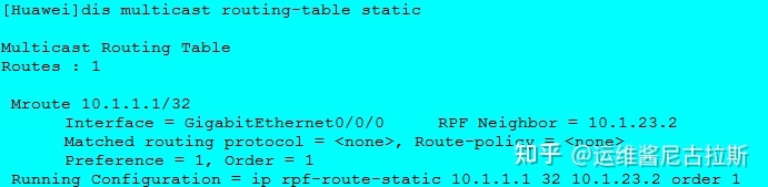 类似于单播中的静态路由,不过这里指定的内容是针对特定的“报文源”,指定RPF接口(RPF接口指的是通过了RPF检查的组播报文的入接口)和RPF邻居(入接口上连接的组播发送上游设备),例如在华为设备上使用命令:ip rpf-route-static 10.1.1.1 255.255.255.255 10.1.23.2可以配置组播静态路由。