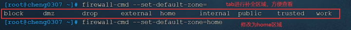 2)设置默认区域为honefirewall-cmd --set-default-zone=home: