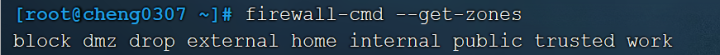 4)显示所有可用的区域firewall-cmd --get-zones: