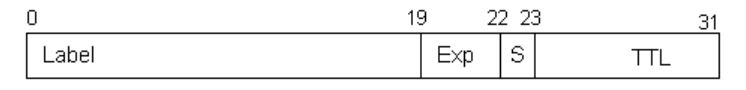 即标签,在帧模式链路上,Label位于二层头与IP报文之间,一个Label头的结构如下: