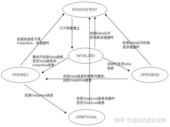 在此状态不管主动方还是被动方都是发出KeepAlive后的状态,在等待对方回应KeepAlive,只要收到KeepAlive消息就转向OPERATIONAL状态;如果收到其它消息或者KeepAlive超时,则转向NON EXISTENT状态。