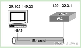 网管工作站(NMS)与以太网交换机通过以太网相连,网管工作站IP地址为129.102.149.23,以太网交换机的VLAN接口IP地址为129.102.0.1。在交换机上进行如下配置:设置团体名和访问权限、管理员标识、联系方法以及交换机的位置信息、允许交换机发送Trap消息。
