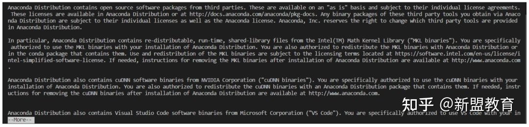 此时显示Anaconda的信息,并且会出现More,继续按Enter,直到如下图所示: