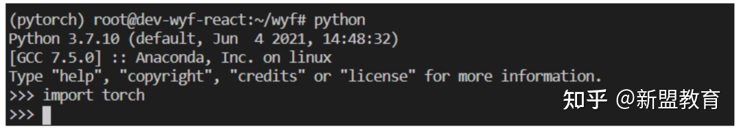 首先输入:python 然后在输入:import torch: