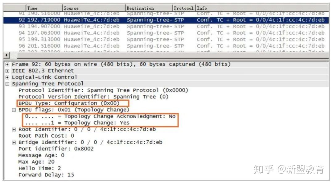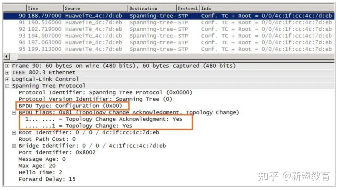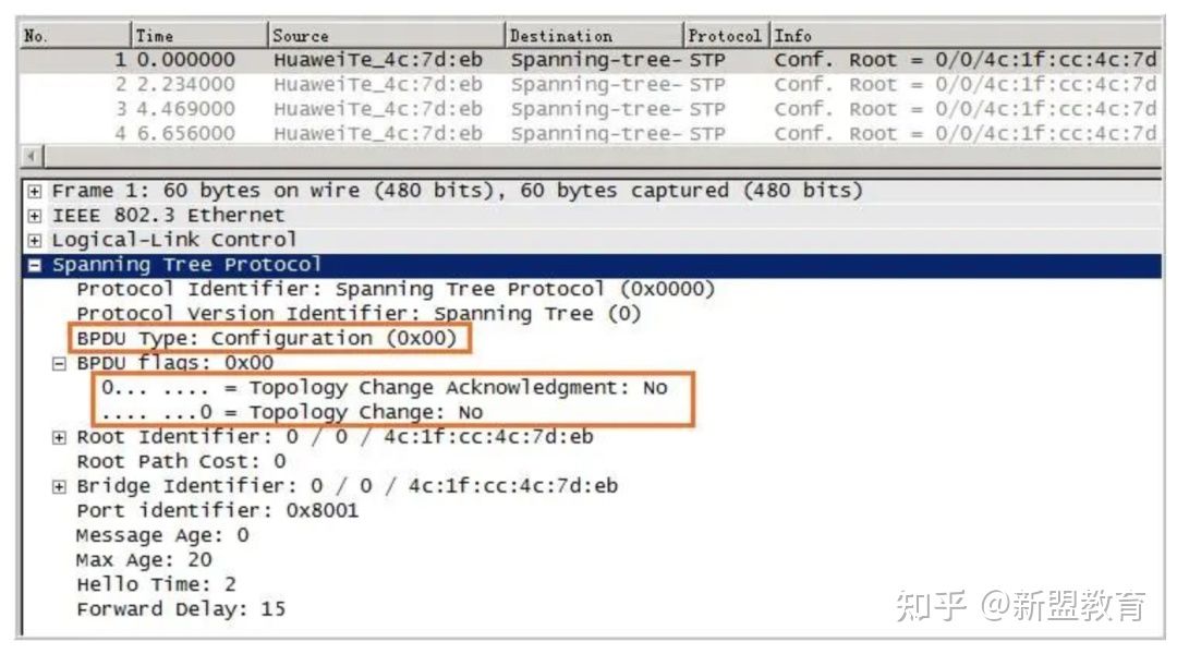 配置BPDU报文:BPDU Type为0x00的BPDU报文,都叫做配置BPDU报文。