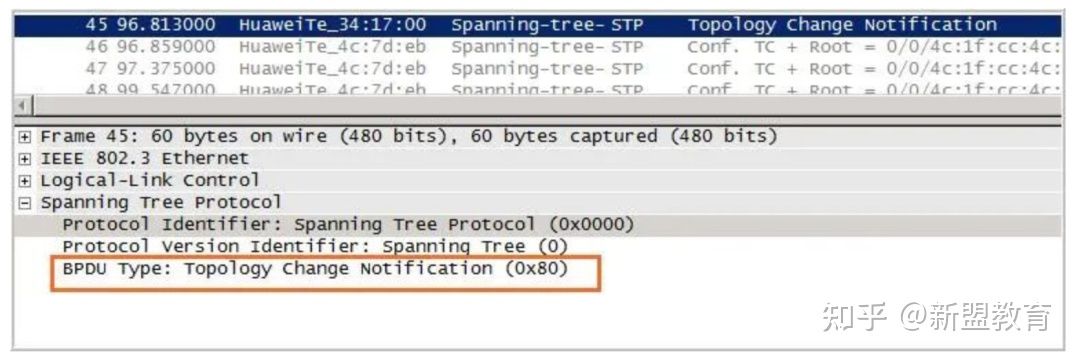 TCN BPDU报文:BPDU Type为0x80的BPDU报文,叫做TCN BPDU报文,用于通知上游设备网络拓扑变更。具体报文格式如下: