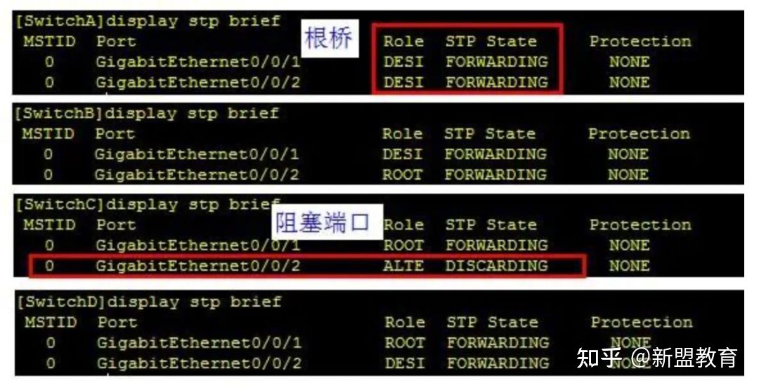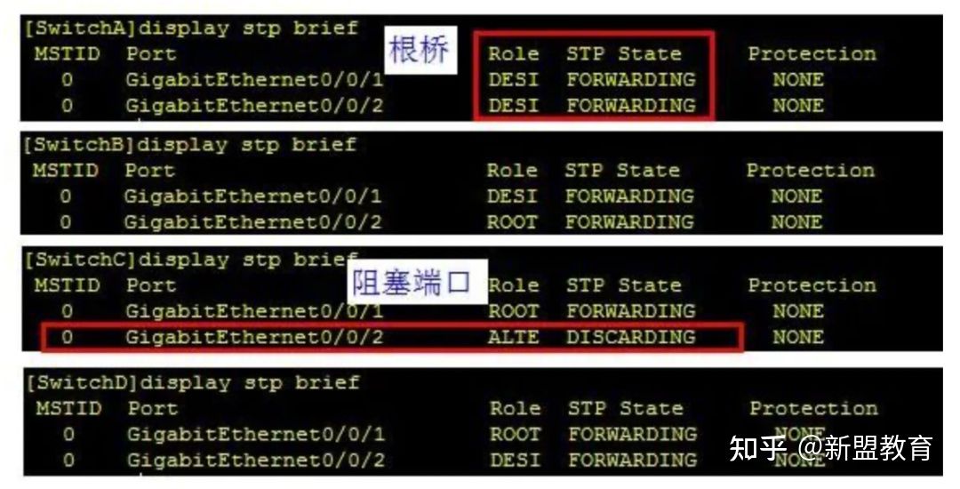 查看STP简要信息,通过STP简要信息可以快速的看出端口的角色和状态。