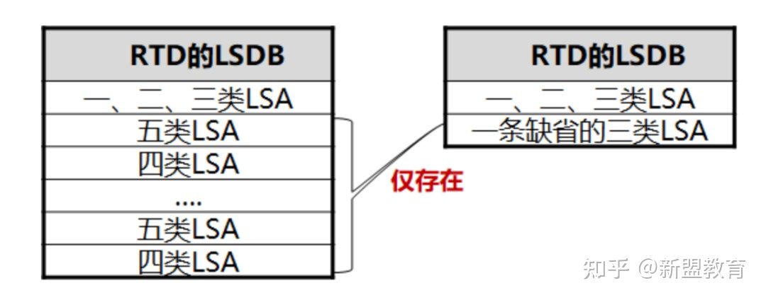 而且我们发现有一些非骨干区域的路由器不需要为其他区域提供流量的中转,那么该区域内的路由器就没有必要维护本区域外的LSDB。所以为了进一步减少路由器LSDB的规模以及LSA的数量,我们可以通过OSFP的特殊区域进一步减少LSA的数量和路由表的规模。