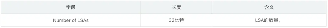 用来向对端Router发送其所需要的LSA或者泛洪自己更新的LSA,内容是多条LSA(全部内容)的集合。