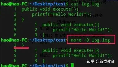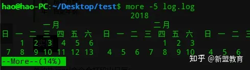 ① +n:从笫n行开始显示。② -n:定义屏幕大小为n行。③ +/pattern:在每个档案显示前搜寻该字串(pattern),然后从该字串前两行之后开始显示 。④ -c:从顶部清屏,然后显示。⑤ -d:提示“Press space to continue,’q’ to quit(按空格键继续,按q键退出)”,禁用响铃功能。⑥ -l:忽略Ctrl+l(换页)字符。⑦ -p:通过清除窗口而不是滚屏来对文件进行换页,与-c选项相似。⑧ -s:把连续的多个空行显示为一行。⑨ -u:把文件内容中的下画线去掉。