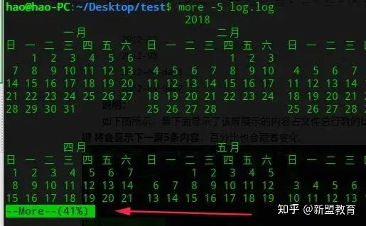 如下图所示,最下面显示了该屏展示的内容占文件总行数的比例,按Ctrl+F或者空格键将会显示下一屏5条内容,百分比也会跟着变化。