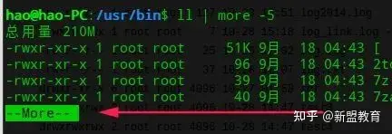 实例4:列一个目录下的文件,由于内容太多,我们应该学会用more来分页显示。这得和管道 | 结合起来 。