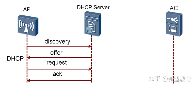 1.在没有预配置AC IP列表时,则启动AP动态AC发现机制。通过DHCP获取IP地址,并通过DHCP协议中的option返回AC地址列表。