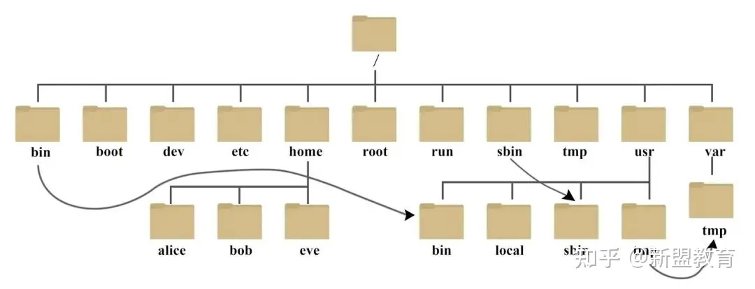 用户的主目录,在Linux中,每个用户都有一个自己的目录,一般该目录名是以用户的账号命名的,如上图中的alice、bob和eve。