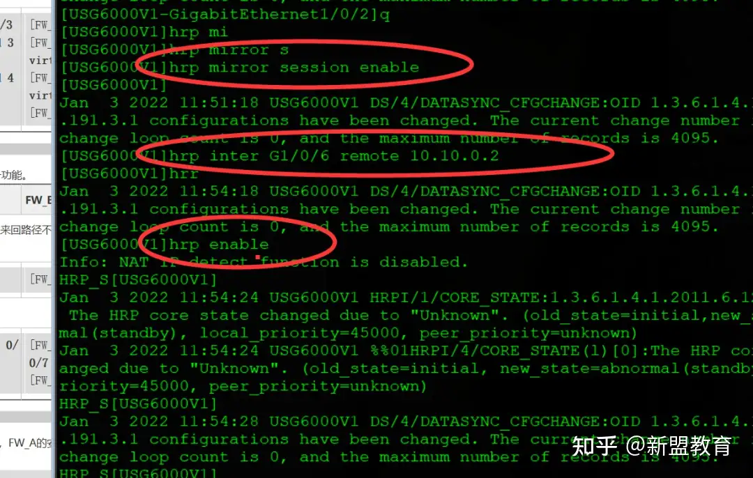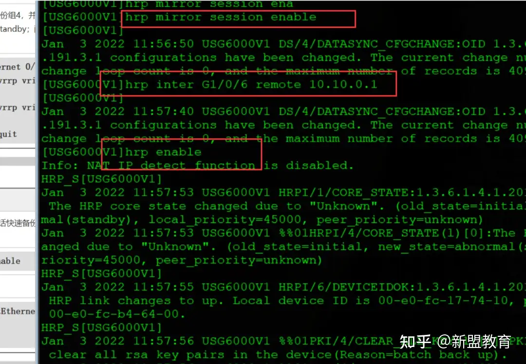 1.地址配置(基础配置)。2.安全区域的划分。3.策略放行。4.VRRP组的创建。5.HRP的配置: