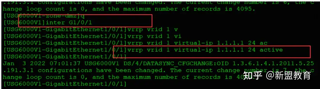 [FW_A] interface GigabitEthernet 1/0/1 [FW_A-GigabitEthernet0/0/1] vrrp vrid 1 virtual-ip 1.1.1.1 24 active [FW_A-GigabitEthernet0/0/1] quit