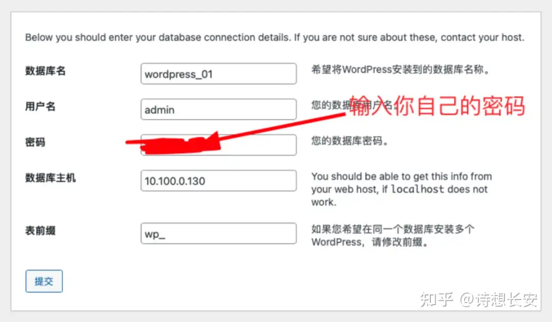 grant all privileges on wordpress_01.* to admin@你自己的ip地址 identified by '你设置的密码';