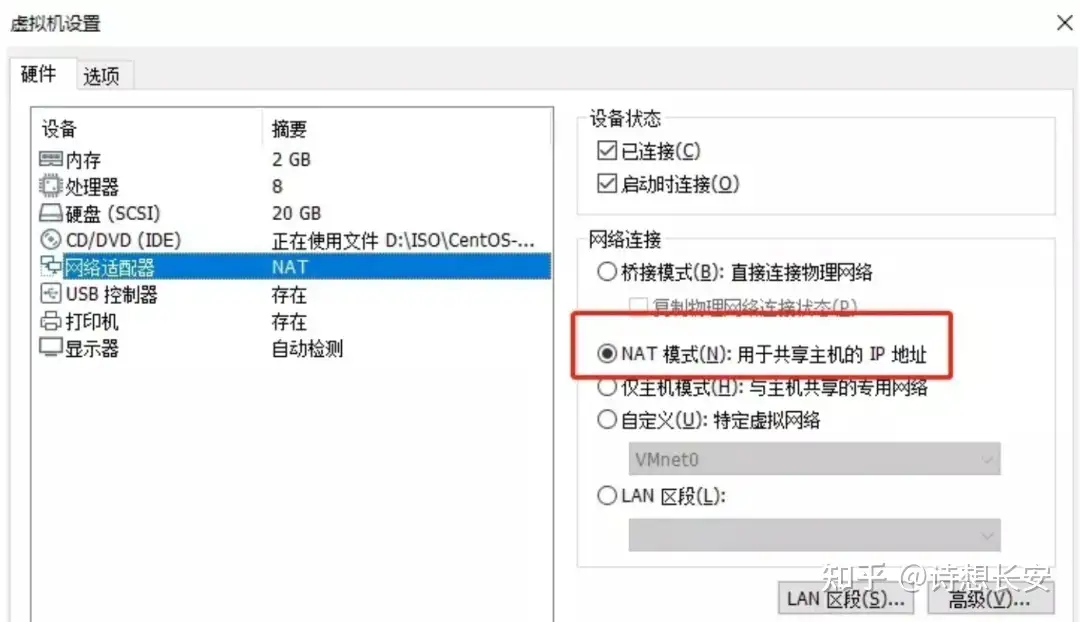 1、把虚拟机网卡设置NAT模式:
